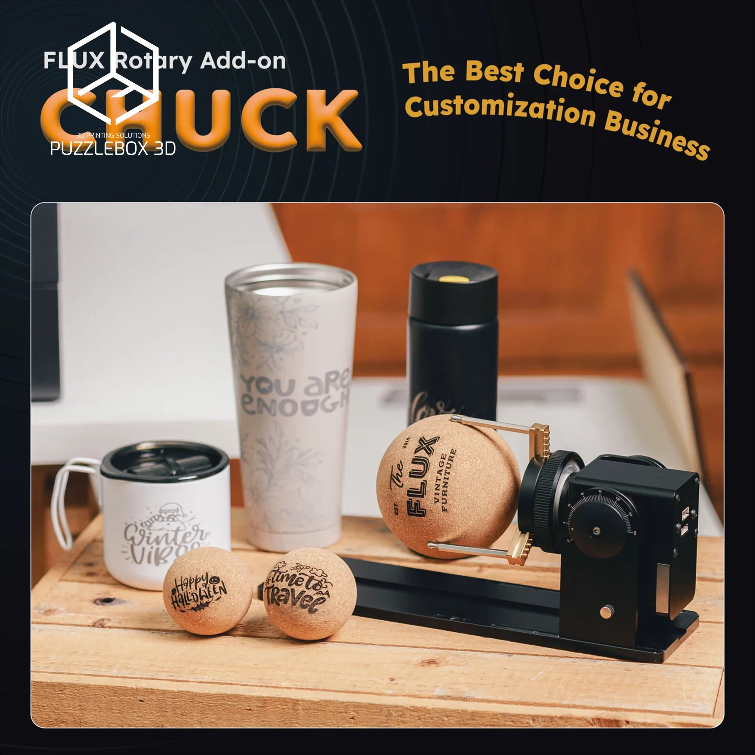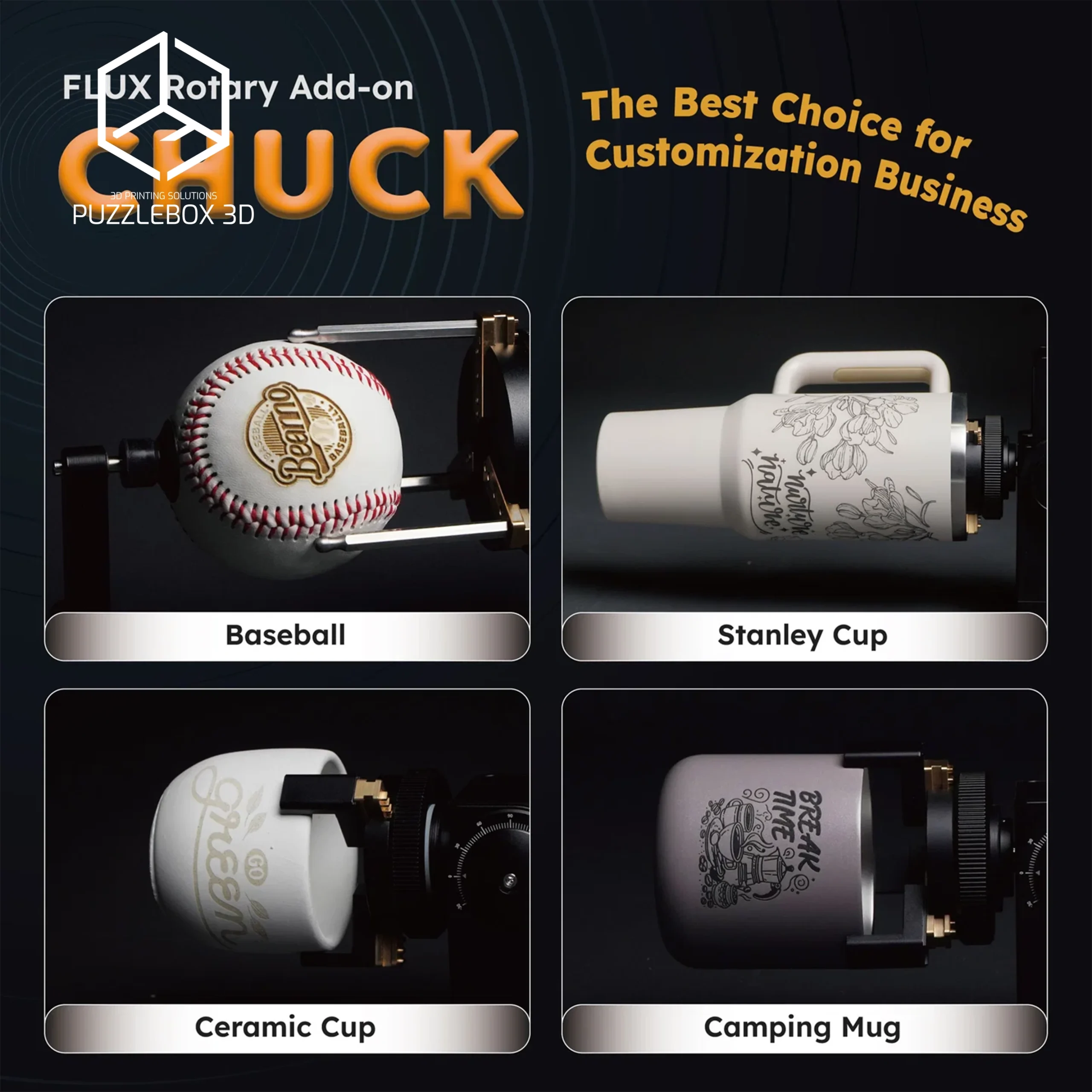| Beambox II Chuck Rotary with Stands | Chuck rotary; Secure clamping; Stand included; Compatible with BBII. |