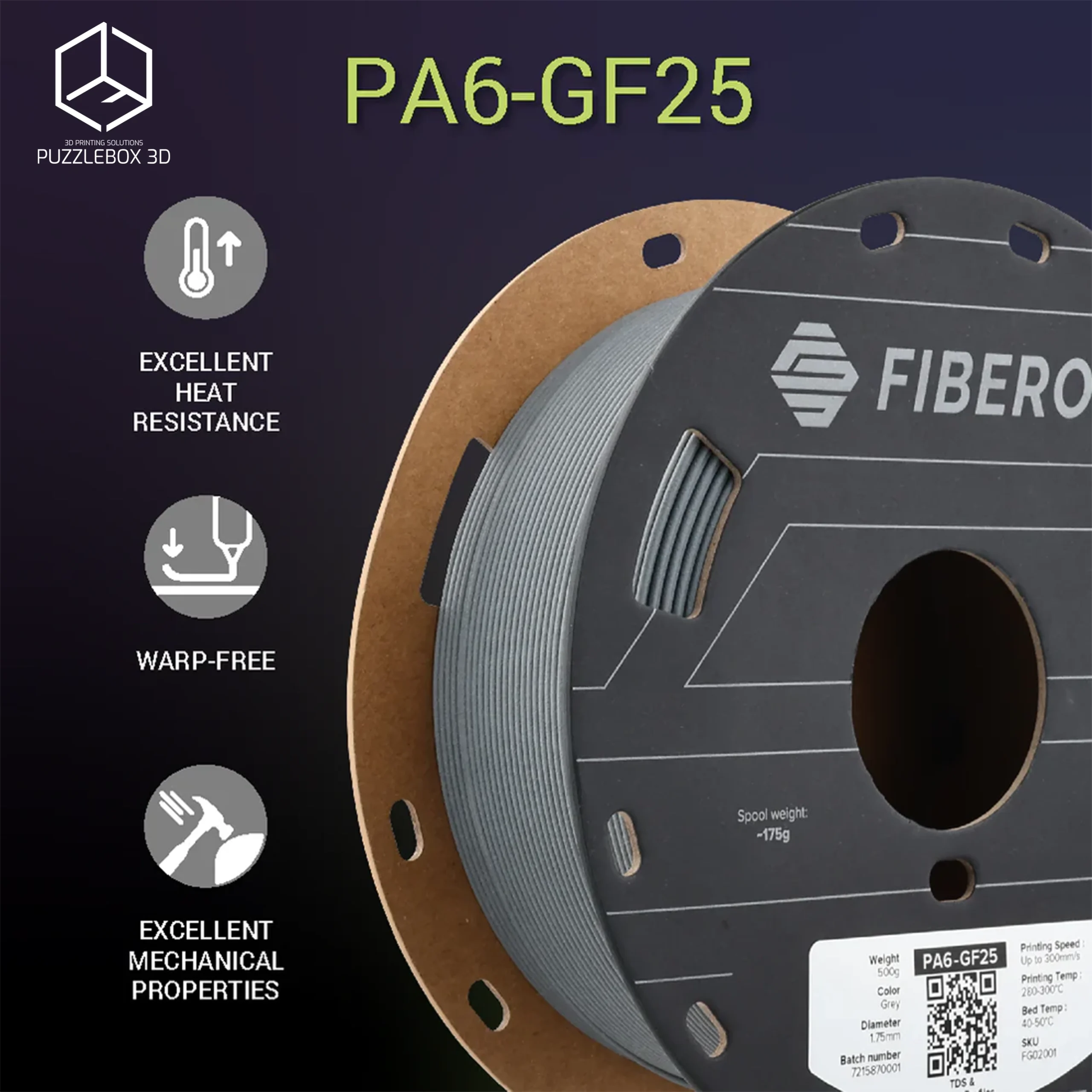 PolyMide™ PA and Fiberon™ PA filaments are high-performance nylon materials designed for strong, durable, and wear-resistant 3D printed parts. Engineered for industrial applications, these materials offer excellent toughness, impact resistance, and fatigue durability, making them ideal for mechanical components and functional prototypes. Fiberon™ PA variants incorporate reinforcements such as carbon fiber or glass fiber, further improving stiffness, dimensional stability, and strength for demanding engineering environments.